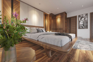 Phòng ngủ là không gian riêng tư nên thiết kế nội thất được trau chuốt đặc biệt. Những vật dụng nội thất cơ bản không thể thiếu trong phòng ngủ gồm giường, tab đầu giường, kệ tivi, tủ quần áo, bàn làm việc hay bàn học,… Tất cả đều được tối ưu hóa ng năng để giúp căn phòng thêm thông thoáng, tiện nghi và gọn gàng hơn.