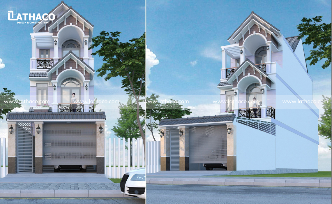 Vợ chồng tôi có một con trai, một con gái, định xây nhà trên khuôn viên hơn 100m2 (5×20, 3m). Gia đình cần tối thiểu 4 phòng ngủ, phòng khách, phòng sinh hoạt chung, phòng thờ và có hầm xe trong nhà. Nắm được yêu cầu của gia chủ, Lathaco đã thiết kế và xây dựng trọn gói cho nhà chị Luyên mẫu nhà phố 3 tầng