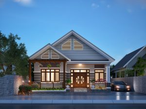 Biệt thự một tầng tân cổ điển mang phong cách vừa có chút hoài cổ bởi lối kiến trúc xưa vừa mang dáng dấp, hơi thở hiện đại. Mẫu biệt thự một tầng này được thiết kế với một khoảng sân vườn trước cửa chính với nhiều cây xanh tỏa bóng mát cho khu vườn đồng thời mang đến một không gian trong lành, mát mẻ. Qua 5 bậc chính đến sảnh là đi ngay vào phòng khách, theo lối thiết kế toàn bộ nội thất bằng gỗ đã mang đến sự sang trọng, lịch sự cho căn phòng. Ngoài ra trong khuôn viên ngôi nhà còn được thiết kế với 3 phòng ngủ, một phòng bếp và một nhà vệ sinh chung.