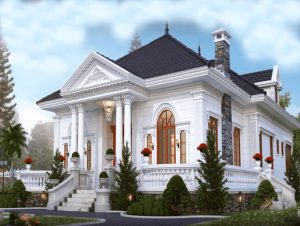 Mẫu biệt thự 1 tầng sân vườn tân cổ điển