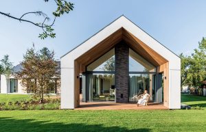 Nếu bạn đang tham khảo mẫu nhà cấp 4 đẹp thì chắc chắn không thể bỏ qua những mẫu nhà đẹp ấn tượng này. Phần nhà hơi dốc nhẹ giúp cho mẫu thiết kế có được sự cân bằng đẹp mắt. Không gian nhà sử dụng toàn bộ khung cửa kính càng giúp ngôi nhà có được độ thoáng và sang trọng.